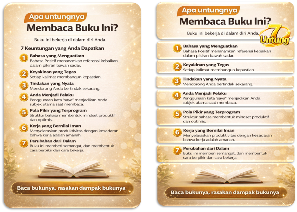 Disusun dengan Bahasa Positif, untuk membentuk pola pikir, memperkuat keyakinan, dan menanamkan tindakan ke dalam pikiran bawah sadar.