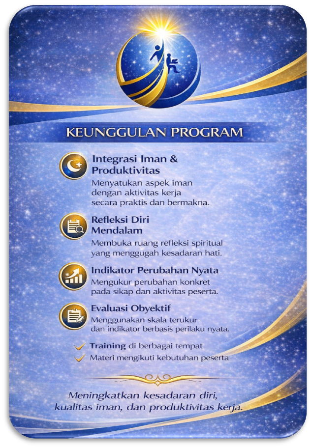 Program ini membantu karyawan menyadari bahwa pekerjaan bukan hanya rutinitas atau target, tetapi amanah. Ketika kesadaran ini tumbuh, integritas meningkat, konflik berkurang, dan produktivitas menjadi lebih stabil.
