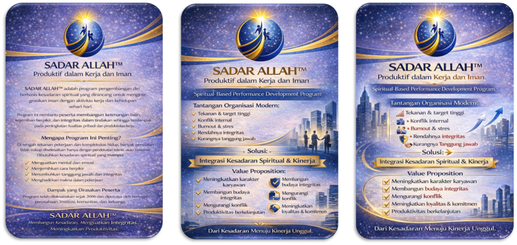 SADAR ALLAH adalah program pengembangan kinerja berbasis kesadaran spiritual.